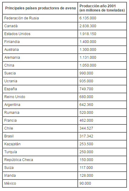 ORIGEN: Las avenas cultivadas tienen su origen en Asia Central, la historia de su cultivo es más bien desconocida, aunque parece confirmarse que este cereal no llegó a tener importancia en épocas tan tempranas como el trigo o la cebada, ya que antes de ser cultivada la avena fue una mala hierba de estos cereales. Los primeros restos arqueológicos se hallaron en Egipto, y se supone que eran semillas de malas hierbas, ya que no existen evidencias de que la avena fuese cultivada por los antiguos egipcios. Los restos más antiguos encontrados de cultivos de avena se localizan en Europa Central, y están datadas de la Edad del Bronce. TAXONOMÍA: La avena es una planta herbácea anual, perteneciente a la familia de las gramíneas, es una planta autógama y el grado de alogamia rara vez excede el 0.5%. La mayoría de las avenas cultivadas son hexaploides, siendo la especie Avena sativa la más cultivada, seguida de Avena byzantina. También se cultiva la especie Avena nuda, conocida como avena de grano desnudo, al desprenderse las glumillas en la trilla. Las características botánicas del grupo de avenas hexaploides son principalmente: la articulación de la primera y segunda flor de la espiguilla, el carácter desnudo o vestido del grano y la morfología de las aristas. MORFOLOGÍA: -Raíces: posee un sistema radicular potente, con raíces más abundantes y profundas que las de los demás cereales. -Tallos: los tallos son gruesos y rectos, pero con poca resistencia al vuelco; tiene, en cambio, un buen valor forrajero. La longitud de éstos puede variar de medio metro hasta metro y medio. Están formados por varios entrenudos que terminan en gruesos nudos. -Hojas: las hojas son planas y alargadas. En la unión del limbo y el tallo tienen una lígula, pero no existen estipulas. La lígula tiene forma oval y color blanquecino; su borde libre es dentado. El limbo de la hoja es estrecho y largo, de color verde más o menos oscuro; es áspero al tacto y en la base lleva numerosos pelos. Los nervios de la hoja son paralelos y bastante marcados. -Flores: la inflorescencia es en panícula. Es un racimo de espiguillas de dos o tres flores, situadas sobre largos pedúnculos. La dehiscencia de las anteras se produce al tiempo de abrirse las flores. Sin embargo, existe cierta proporción de flores que abren sus glumas y glumillas antes de la maduración de estambres y pistilos, como consecuencia se producen degeneraciones de las variedades seleccionadas. -Fruto: El fruto es en cariópside, con las glumillas adheridas. IMPORTANCIA ECONÓMICA Y DISTRIBUCIÓN GEOGRÁFICA: En la producción mundial de cereales la avena ocupa el quinto lugar, siendo el cereal de invierno de mayor importancia en los climas fríos del hemisferio norte.