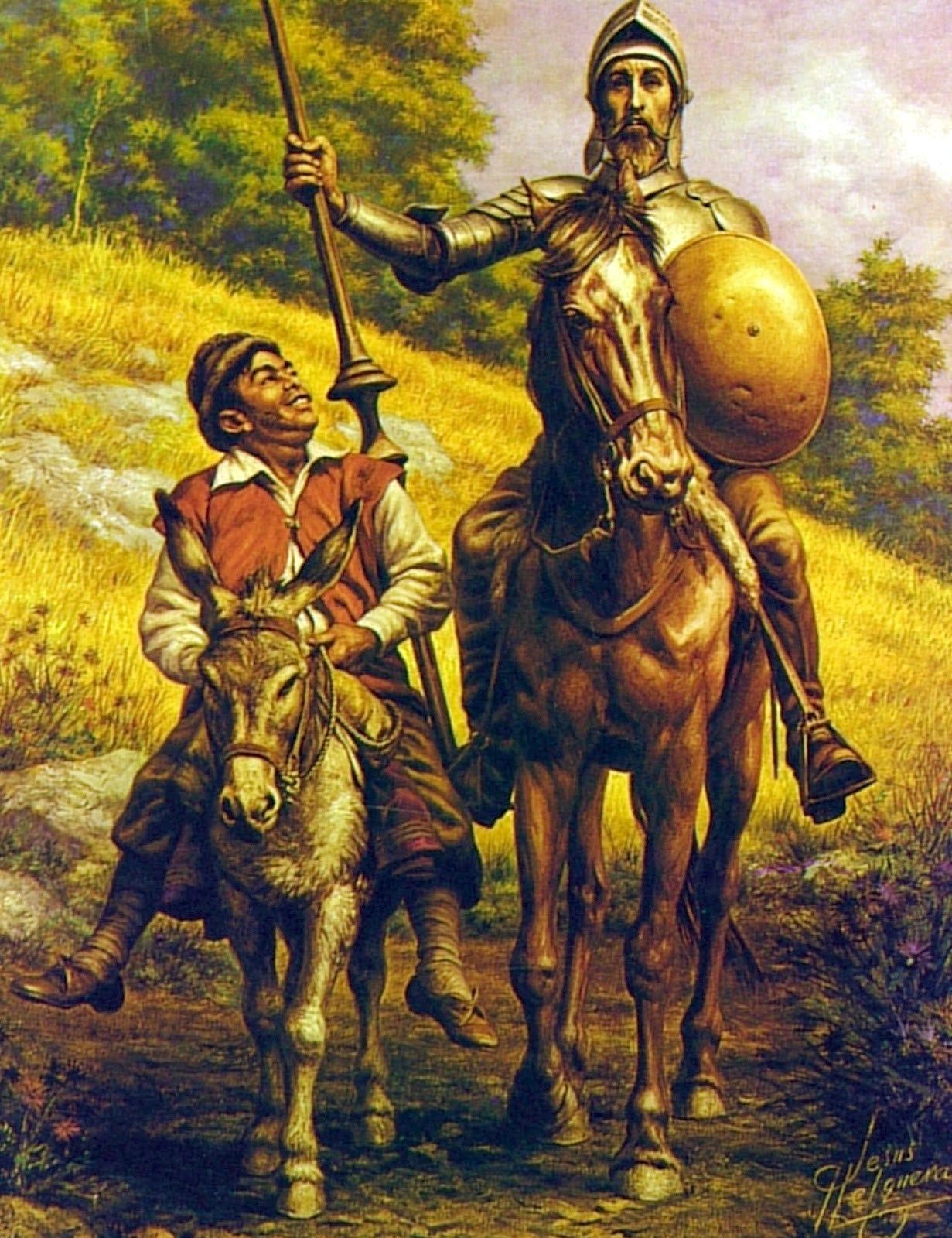 Temas y personajesEl Quijote es un tratado del ser humano: el idealismo, la justicia, etc... están presentes. Crítica de los libros de caballerías. Denuncia social. Locura, verdad y libertad. Los protagonistas son dos figuras opuestas que se complementan. Don Quijote. Sus valores supremos son el idealismo, la justicia, hacer el bien, la literatura y el amor a su dama, Dulcinea del Toboso. Sancho. Es realista, materialista, miedoso y está aferrado a la sabiduría popular.
