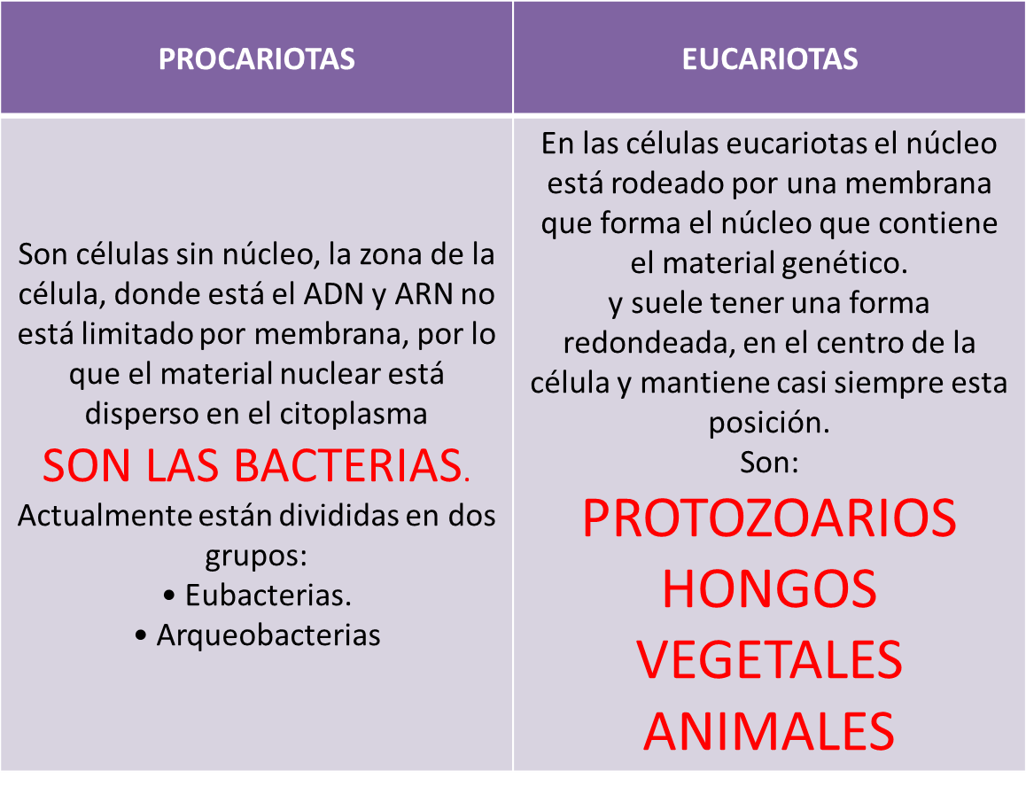 Diferencia entre ambas células. Origen de procariotas. Formación de eucariotas. Panorama general de eucariotas.