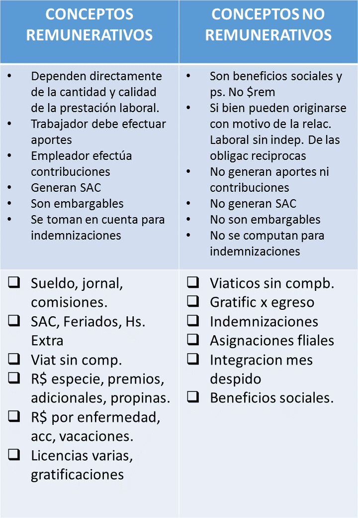 CONCEPTOS REMUNERATIVOS Y NO REMUNERATIVOS
