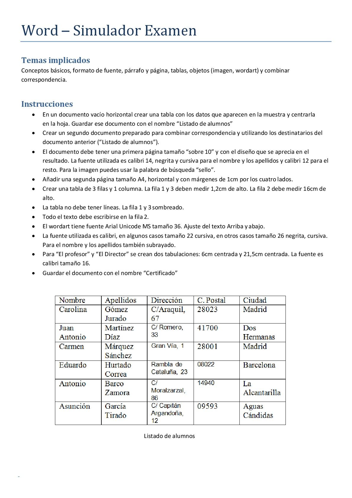 COMPARE RESULTADOS: "Listado de alumnos.doc" (Resuelto) : https://1drv.ms/w/s!AuQkpMWlTgWRiyDN_H-lzENScChB "Certificado.doc" (Resuelto): https://1drv.ms/w/s!AuQkpMWlTgWRiyHDMUxHKm19QRmX "Material Excel.xls" (Resuelto): https://1drv.ms/x/s!AuQkpMWlTgWRix9lcexNiT7b4AnP