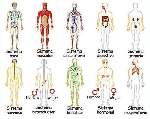 El cuerpo humano se compone de cabeza, tronco y extremidades; los brazos son las extremidades superiores y las piernas las inferiores. El tronco se divide en tórax y abdomen, articulando a las extremidades superiores, inferiores y a la cabeza. Uno de los sistemas de clasificación del cuerpo humano, respecto a sus componentes constituyentes, es la establecida por Wang y col. en 1992: Nivel atómico: carbono, hidrógeno, oxígeno, nitrógeno, azufre y fósforo. Nivel molecular: agua, proteínas, lípidos, hidroxiapatita. Nivel celular: intracelular, extracelular. Nivel anatómico: tejido muscular, adiposo, óseo, piel, órganos y vísceras. Nivel cuerpo íntegro: masa corporal, volumen corporal, densidad corporal.El cuerpo humano está organizado en diferentes niveles jerarquizados. Así, está compuesto de aparatos; estos los integran sistemas, que a su vez están compuestos por órganos conformados por tejidos, que están formados por células compuestas por moléculas. El cuerpo humano posee más de cincuenta billones de células. Éstas se agrupan en tejidos, los cuales se organizan en órganos, y éstos en ocho aparatos o sistemas: locomotor (muscular y óseo), respiratorio, digestivo, excretor, circulatorio, endocrino, nervioso y reproductor.En resumen, cuando realizamos alguna actividad intervienen muchos sistemas para llevar a cabo un proceso de la vida cotidiana.