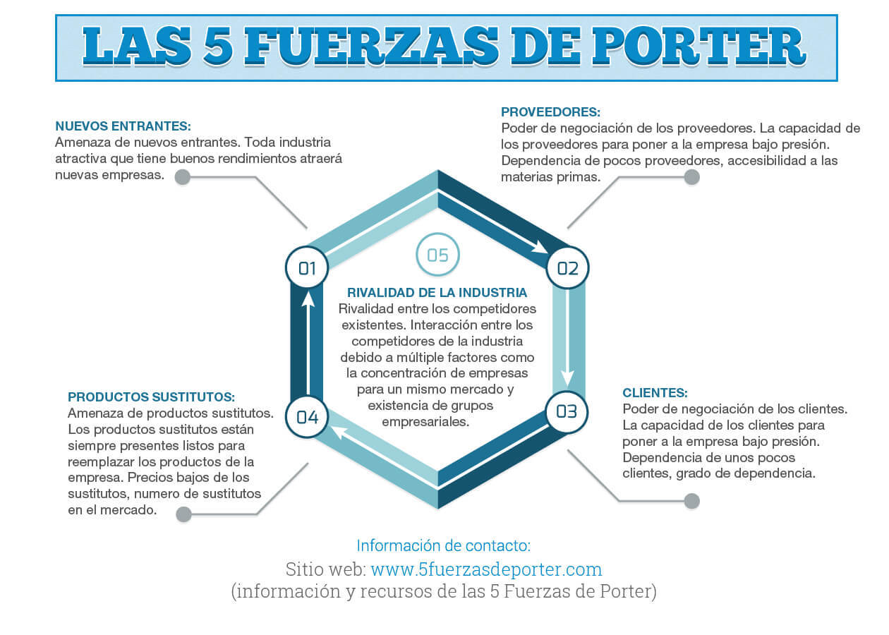 b) Aplicación de las fueras de PorterEs aún más evidente la aplicación de las cinco fuerzas de Porter, en las que los competidores dejan de ser empresas para ser adversarios personales, que compiten en la misma rama profesional. Los compradores serían las empresas con necesidades de recursos humanos, que buscan en el mercado laboral nuevas adquisiciones, mientras que los vendedores serían los sujetos que se ofrecen a sí mismos en ese mercado, ofertando como producto su propia actividad profesional. Finalmente, la quinta fuerza sería la evolución tecnológica e innovadora que, en ocasiones, llega a suplantar la propia necesidad de un sujeto agente, substituyéndolo por maquinaria más efectiva. La amenaza de nuevos adversarios. La rivalidad entre los adversarios existentes. El poder negociador de las empresas de contratación. El poder negociador de los buscadores de empleo. La amenaza de inutilidad del cargo.