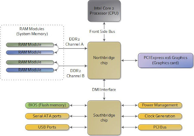 Es un conjunto de chips que se encargan de administrar el flujo de información entre todos los dispositivos de la placa madre. Estos chips son llamados Northbridge y Southbridge (Puente norte y Puente sur). El chipset se ocupa de recibir manejar el trafico de datos para entregar la información que es solicitada. EL chipset es el encargado de manejar los controladores del sistema como AGP, PCI Express, PCI, Puertos IDE, memoria, puertos USB y Firewire