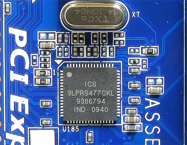 El clock es un circuito integrado que se encuentra conectado a un pequeño cristal de cuarzo de 14,31818 MHz que hacen la diferencia de señales de reloj que existe en el motherboard. Este dispone de una entrada de clock y otras entradas para la configuración de salida.Con el generadorde clock dependen las cualidades de los motherboards para poder incrementar la frecuencia de bus frontal y de la memoria, en pasos mas o menos precisos.Muchos de los generadores clock no están funcionando al 100% de su capacidad ya que los fabricantes de motherboard no se percataron de las especificaciones de los fabricantes del clock o simplemente no querían aumentar los gastos de producción, si investigamos a fondo sobre unos clock podemos sacarles provecho sabiendo que podemos hacer para que trabajen al cien por ciento.