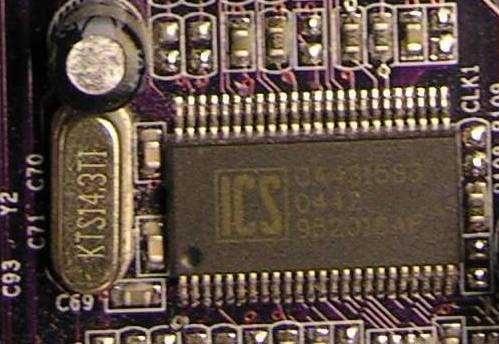 Generador de clock.las diferentes señales de reloj que se generan en la motherboard se generan mediante un pequeño cristal cruzado de 14,31818MHz que esta conectado a un pequeño circuito integrado llamado clock. Dispone de una entrada de clock y otras entradas de salidas. El resto de los pines son para las diversas salidas que tratan de las señales clock AGP el PCI, el chipset, la memoria RAM y la frecuencia base del procesador.Del generador clock dependen las cualidades de la motherboard para poder incrementar las frecuencias del bus frontal y de la memoria .