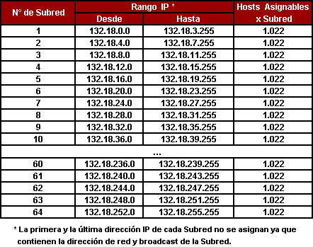 La conexión en subredes permite crear múltiples redes lógicas que existen dentro de una red única Clase A, B o C. Si no crea una subred, solamente podrá utilizar una red de la red de Clase A, B o C, lo que es poco realista. Cada link de datos de una red debe tener una identificación de red única, siendo cada nodo de ese link miembro de la misma red. Si divide una red principal (clase A, B, o C) en subredes menores, podrá crear una red de subredes interconectadas. Cada link de datos de esta red tendrá entonces una identificación única de red/subred. Cualquier dispositivo o gateway, que conecte n redes/subredes tendrá n direcciones IP distintas, una por cada red/subred que interconecte. Para crear subredes en una red, amplíe la máscara natural usando algunos de los bits de la parte de identificación de host de la dirección para crear una identificación de subred. Por ejemplo, dada una red de Clase C de 204.17.5.0 que tenga una máscara natural de 255.255.255.0, puede crear subredes de este modo: 204.17.5.0 - 11001100.00010001.00000101.00000000 255.255.255.224 - 11111111.11111111.11111111.11100000 --------------------------|sub|---- Extendiendo la máscara para que sea 255.255.255.224, ha tomado tres bits (indicados por "sub") de la parte original del host de la dirección y los ha utilizado para crear subredes. Con estos tres bits, es posible crear ocho subredes. Con los cinco bits de ID de host restantes, cada subred puede tener hasta 32 direcciones de host, 30 de las cuales pueden asignarse realmente a un dispositivo ya que las ID del host con todos ceros o todos unos no están permitidas (es muy importante recordar esto). Así pues, con esto en la mente, se han creado estas subredes. 204.17.5.0 255.255.255.224 host address range 1 to 30 204.17.5.32 255.255.255.224 host address range 33 to 62 204.17.5.64 255.255.255.224 host address range 65 to 94 204.17.5.96 255.255.255.224 host address range 97 to 126 204.17.5.128 255.255.255.224 host address range 129 to 158 204.17.5.160 255.255.255.224 host address range 161 to 190 204.17.5.192 255.255.255.224 host address range 193 to 222Nota: Hay dos maneras de denotar estas máscaras. Primero, puesto que está utilizando tres bits más que la máscara “natural” de la Clase C, puede denotar estas direcciones como si tuvieran una máscara de subred de 3 bits. O, en segundo lugar, la máscara de 255.255.255.224 también se puede indicar como /27 ya que hay 27 bits establecidos en la máscara. Este segundo método se utiliza con CIDR. Con este método, una de estas redes se puede describir con el prefijo/la longitud de la notación. Por ejemplo, 204.17.5.32/27 denota la red 204.17.5.32 255.255.255.224. Cuando se utiliza la anotación de prefijo/longitud apropiado para indicar la máscara en todo el resto de este documento.Esto abre un punto interesante. Cuantos más bits host use para una máscara de subred, más subredes tendrá disponibles. Sin embargo, cuantas más subredes haya disponibles, menos direcciones de host estarán disponibles por subred. Por ejemplo, una red Clase C de 204.17.5.0 y una máscara de 255.255.255.224 (/27) permite tener ocho subredes, cada una con 32 direcciones de host (30 de las cuales podrían asignarse a dispositivos). Si utiliza una máscara de 255.255.255.240 (/28), la subdivisión es: 204.17.5.0 - 11001100.00010001.00000101.00000000 255.255.255.240 - 11111111.11111111.11111111.11110000 --------------------------|sub |--- Dado que ahora cuenta con cuatro bits para crear subredes, sólo le quedan cuatro bits para las direcciones de host. Entonces en este caso puede tener hasta 16 subredes, cada una de las cuales puede tener hasta 16 direcciones host (14 de las cuales pueden ser asignadas a dispositivos). Eche una mirada a cómo podría dividirse en subredes una red de Clase B. Si tiene la red 172.16.0.0, sabe que su máscara natural es 255.255.0.0 o 172.16.0.0/16. Extender la máscara cualquier cosa más allá de 255.255.0.0 significa que se está creando subredes. Rápidamente puede ver que tiene capacidad para crear muchas más subredes que con la red de Clase C. Si utiliza una máscara de 255.255.248.0 (/21), ¿cuántas subredes y hosts permitirá por subred? 172.16.0.0 - 10101100.00010000.00000000.00000000 255.255.248.0 - 11111111.11111111.11111000.00000000 -----------------| sub |----------- Usted está utilizando cinco de los bits originales del host para subredes. Esto permite que usted tenga 32 subredes (25 ). Después de utilizar los cinco bits para crear subredes, quedarán 11 bits para direcciones de host. Esto permite cada subred así que tiene 2048 direcciones de host (211), 2046 cuyo podría ser asignado a los dispositivos. Nota: En el pasado, había limitaciones al uso de una subred 0 (todos los bits de subred se establecen en cero) y de una subred de todo unos (todos los bits de subred establecidos en uno). Algunos dispositivos no permitirían el uso de estas subredes. Los dispositivos Cisco Systems permiten el uso de estas subredes cuando se configura el comando ip subnet zero.