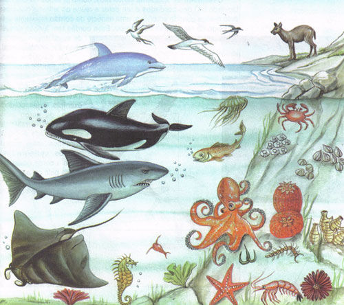 Reino Animal: Este Reino tiene su primera clasificación en vertebrados e invertebrados.Vertebrados: tienen un esqueleto interno con columna vertebral. Usan el aparato locomotor para desplazarse. Dentro de este grupo entran: los peces, los mamíferos, las aves, los reptiles y los anfibios. Invertebrados: no tienen esqueleto interno.Dentro no tienen huesos ni columna vertebralaunque pueden tener alugunas partes duras(por ejemplo la concha del caracol). A estegrupo pertenecen: artrópodos, equinodermos,gusanos, moluscos, celentéreos y poríferos.