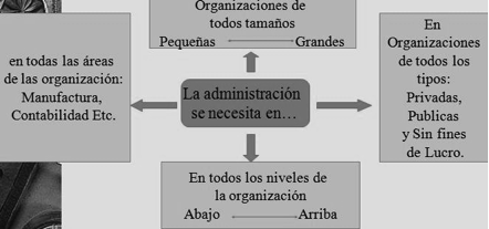 Universalidad de la administración: La administración es necesaria en organizaciones de TODO tipo y tamaño, en todos sus niveles y áreas de trabajo.