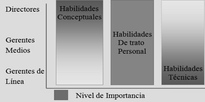 Habilidades administrativas(Robert Katz) Habilidades técnicas: Conocimiento y competencias un campo especializado. Habilidades de trato personal: Capacidad de trabajar bien con otras personas. Habilidades conceptuales: Capacidad de "pensar" y conceptuar situaciones abstractas y complejas.