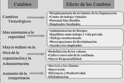 Cambios en el trabajo del gerente:Dos cambios significativos: Importancia creciente de los clientes (proporcionar un servicio al cliente de calidad) y innovación (explorar nuevos territorios, correr riegos y adaprtarse a los cambios).