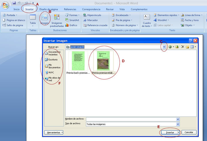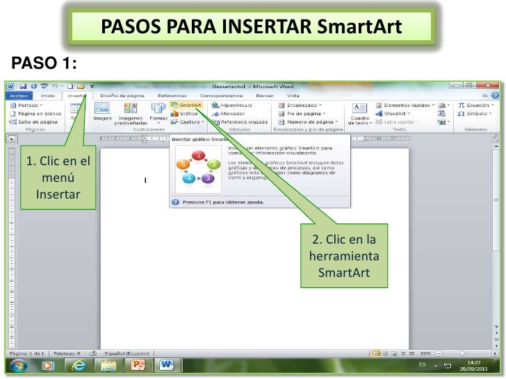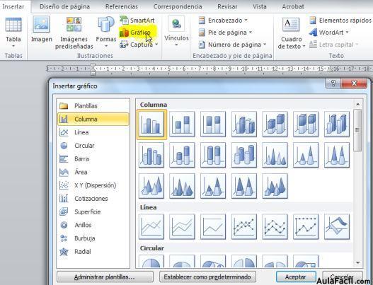 IMÁGENESLos elementos de que consta Word se encuentran en la pestaña Insertar > grupo Ilustraciones, y son los siguientes:- Imágenes. Inserta una imagen o foto guardada en el disco. Suelen ser de tipo JPG, GIF o PNG. Se pueden realizar algunas operaciones como cambiar el tamaño, el brillo,..., pero no se pueden desagrupar en los elementos que las forman.- Imágenes en línea. Se abrirá una ventana para que elijas entre Imágenes prediseñadas de Office.com o Búsqueda de imágenes en Bing. Si tienes SkyDrive también aparecerá como una opción más. Es necesario estar conectado a Internet.- Formas. Mediante autoformas, líneas, rectángulos, elipses.- SmartArt. Representación de datos en forma de organigramas.- Gráfico. Representación de datos en forma gráfica.- Captura. Son trozos de la pantalla capturadas por el usuario.Sobre las imágenes y los gráficos pueden realizarse multitud de operaciones, como mover, copiar, cambiar el tamaño, variar la intensidad. Para ello disponemos de varias pestañas que vamos a ir viendo a continuación, fundamentalmente la pestaña Formato para las imágenes y las pestañas Diseño y Presentación para los gráficos,