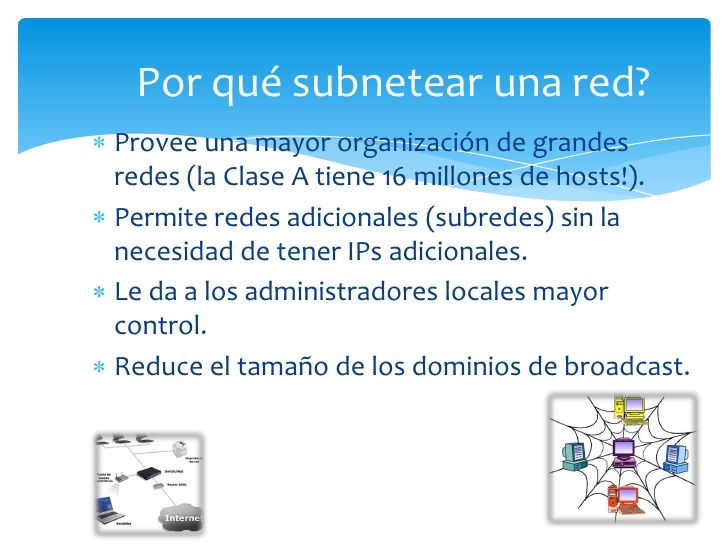 ¿QUÉ ES SUBNETEO? Es dividir una red primaria en una serie de subredes, de tal forma que cada una de ellas va a funcionar luego, a nivel de envio y recepcion de paquetes, como una red individual, aunque todas pertenezcan a la misma red principal y por lo tanto, al mismo dominio.