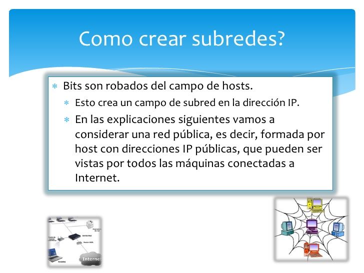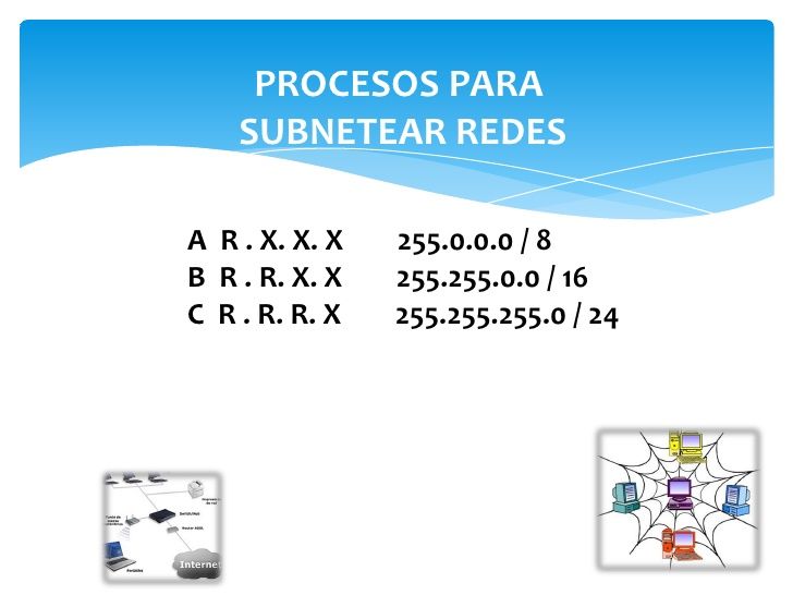 Clases de subredesToda organización que planee una red LAN basada en protocolo IP o conectarse a la Internet debe conseguir un bloque de direcciones de IP únicas. Las direcciones se reservan en la autoridad de registro apropiada por ejemplo la Internic. Por conveniencia, las NIC delegan esta función a los IPS asignándoles grandes bloques de direcciones de IP. De esta forma, las organizaciones pueden obtener sus direcciones de sus proveedores de servicios en lugar de un NIC de registro. Durante muchos años, sólo había tres tamaños de boques de direcciones, grande, mediano y pequeño. Existían tres formatos diferentes de direcciones de red para cada uno de los tamaños de bloques. Los formatos de direcciones eran: Clase A para redes muy grandes.Clase B para redes de tamaño medio.Clase C para redes pequeñas.