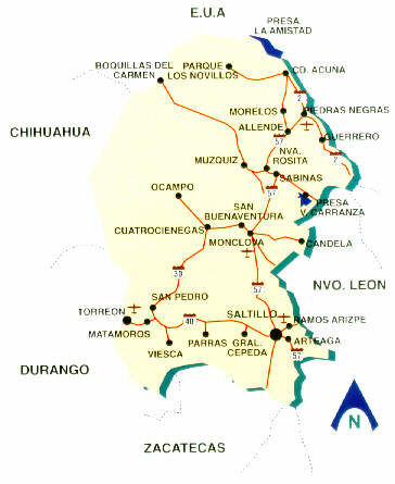 Coahuila de Zaragoza es un estado del Noreste de México y uno de los 31 estados que junto con el Distrito Federal conforman las 32 entidades federativas de México. Es el tercer estado más grande del país pues tiene una extensión territorial de 151,571 km². Cuenta con una gran cantidad de ecosistemas que van desde los desiertos en la Comarca Lagunera y los bosques en la Sierra Madre Oriental. El estado de Coahuila es famoso por haber formado parte de la República del Río Grande en el año de 1840. Sus ciudades más pobladas son: Saltillo, Torreón y Monclova, entre otras. Además, Coahuila cuenta con cuatro municipios reconocidos por el programa de Pueblos Mágicos, que son: Parras de la Fuente, Cuatrociénegas de Carranza, Arteaga y Viesca. Limita al norte con el estado estadounidense de Texas , al sur con Zacatecas y San Luis Potosí, al este con Nuevo León y al oeste con Durango y Chihuahua. Su capital es la ciudad de Saltillo.