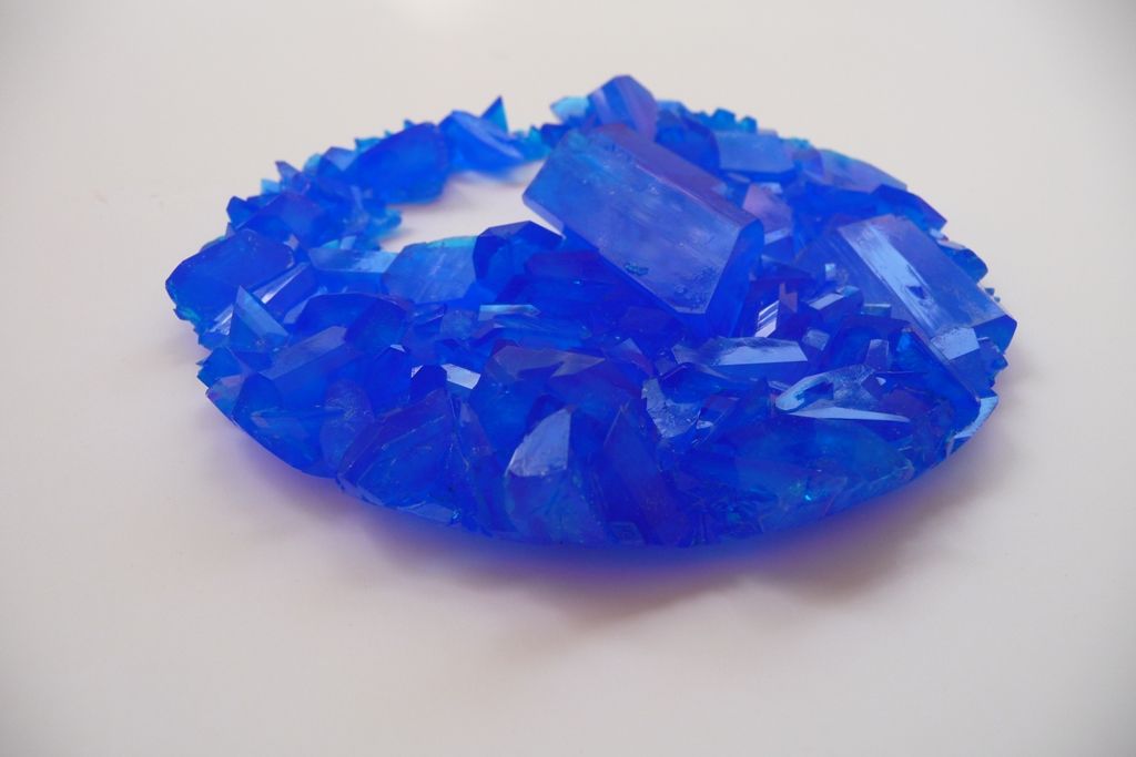 La investigación acerca de los cristales ha adquirido enorme importancia en estos momentos en los que asistimos a una incesante búsqueda de nuevos materiales, y cuando se ha comprobado que conseguir una determinada forma cristalina puede servir para, por ejemplo, optimizar las propiedades de los medicamentos, como puede ser el caso de una simple aspirina. La forma de cristalización hace que las propiedades, incluyendo la estabilidad, solubilidad y velocidad de disolución, higroscopicidad y disponibilidad del fármaco sean diferentes e incluso puede dar lugar a que, en una determinada forma, un medicamento resulte eficaz, mientras que en otra sea un producto perjudicial para la salud. *Condiciones de cristalización:Para que la materia pueda reorganizarse formando determinadas estructuras, las moléculas o iones deben estar en movimiento y perder dicha movilidad en unas determinadas condiciones: • Con tiempo suficiente (lentamente) • En reposo. • Disponiendo de espacio suficiente para orientarse. Los cristales más perfectos se obtienen en las naves espaciales porque, en ausencia de gravedad, sólo actúan las fuerzas entre los iones o moléculas. Este es el motivo por el cual entre los diferentes programas que se desarrollan en cualquier vuelo espacial, siempre alguno o algunos se refieren a la obtención de cristales. Estas condiciones se pueden conseguir mediante procesos físicos o químicos. a) Procesos físicos: – Evaporación del disolvente: Es el proceso por el que, en la naturaleza, se originan las rocas sedimentarias de precipitación química, concretamente las llamadas evaporíticas. En el laboratorio la evaporación de una disolución de cualquier sal que no sea higroscópica puede ilustrar este proceso. Nosotros este caso lo veremos en la práctica del sulfato de cobre (II). – Fusión: En la naturaleza se forman así las rocas plutónicas y volcánicas. Este proceso en el laboratorio consiste en calentar un sólido, hasta que funda (paso sólido- líquido) y dejar enfriar para que vuelva a solidificar. – Sublimación: En las zonas volcánicas la sublimación es un fenómeno relativamente frecuente, por brusco enfriamiento de los gases emitidos en las fisuras superficiales. En el laboratorio lo comprobaremos a través de la siguiente experiencia: b) Procesos químicos.Cristalización por una reacción muy:Proceso RED-OX:
