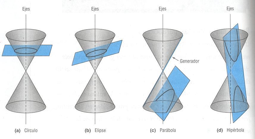 Existen cuatro tipos de cónicas: circunferencia, elipse, parábola y hipérbola.Cónicas en nuestro entorno Las formas de las secciones cónicas están ocultas en la estructura de muchas cosas, en las estructuras de diseños arquitectónicos, fabricación de objetos pequeños, en el funcionamiento de instrumentos tecnológicos útiles en medicina, ingeniería, navegación y astronomía entre otros, en la descripción del movimiento de objetos y en las formas generales por situaciones ópticas entre otras.