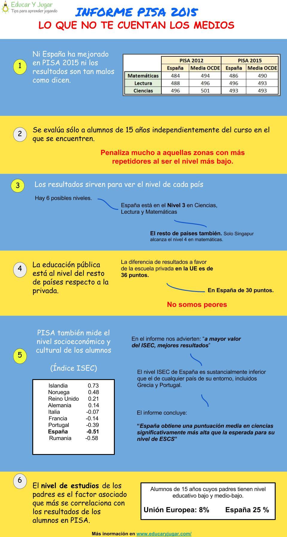 Inforgrafía resumen de lo más destacable del Informe PISA 2015 en cuanto a la educación en ESPAÑA