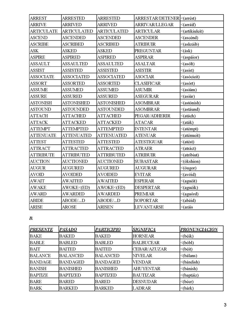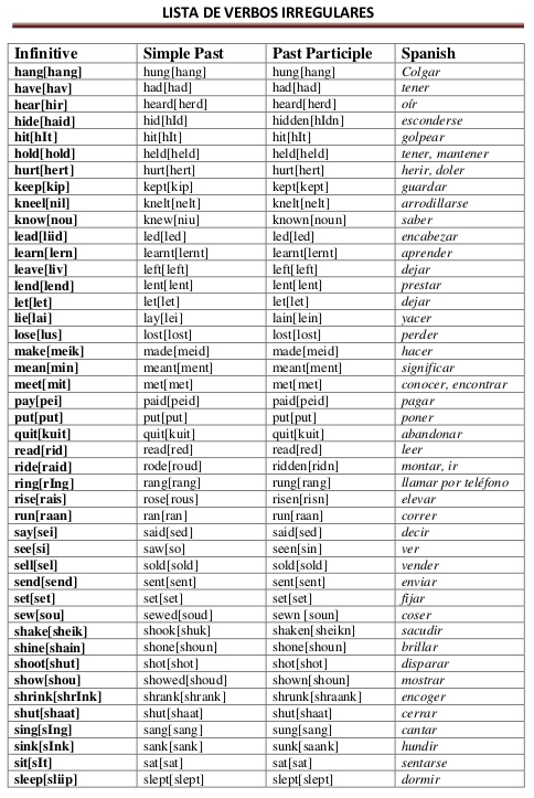 Los verbos irregulares En ingles son un caso distinto, al conjugarlos en pasado cambia la manera en que se escribe. A continuación un listado con verbos irregulares en ingles.