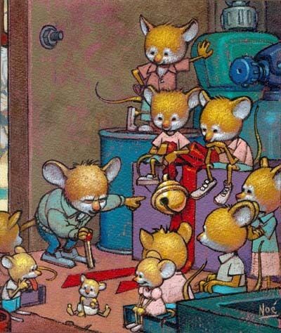 Juntáronse los ratones para librarse del gato, y después de largo rato de disputas y opiniones, dijeron que acertarían en ponerle un cascabel, que andando el gato con él, librarse mejor podrían. Salió un ratón barbicano, colilargo, hociquirromo, y encrespando el grueso lomodijo al "senado romano", después de hablar culto un rato: -¿Quién de todos ha de ser el que se atreva a poner ese cascabel al gato? Félix Lope de Vega.
