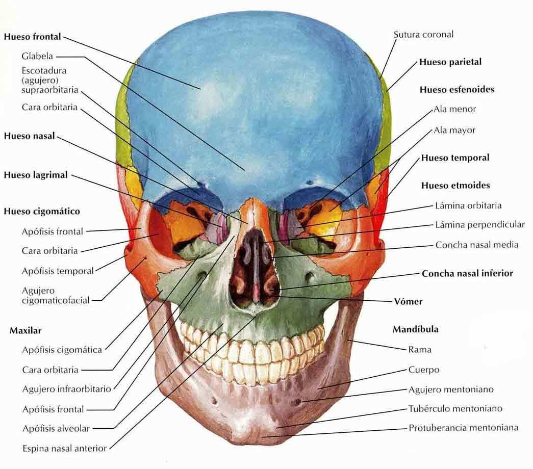 Parte anterior del cráneo que:Contiene órbitas y cavidades nasales además comprende el maxilar y la mandíbula
