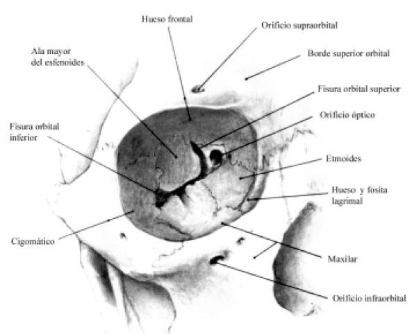 Fisuras orbitarias: Son pequeños orificios que se encuentras dentro de las órbitas, existe una superior(de mayor tamaño) y una inferior( de menor tamaño)
