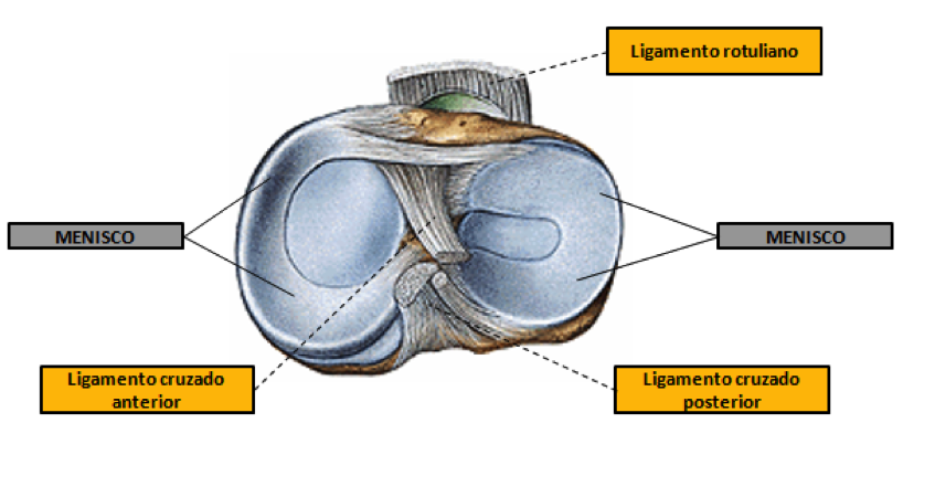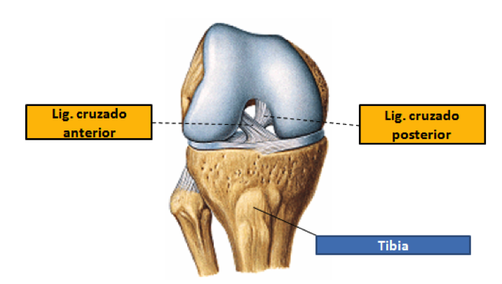 2. Visión interna de la rodilla En una visión interna de la articulación se pueden observar, principalmente, dos ligamentos muy importantes: el ligamento cruzado anterior y el ligamento cruzado posterior.
