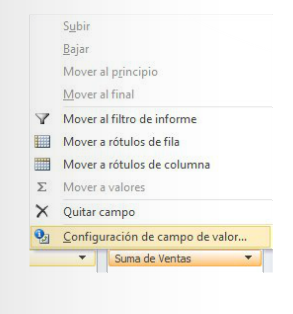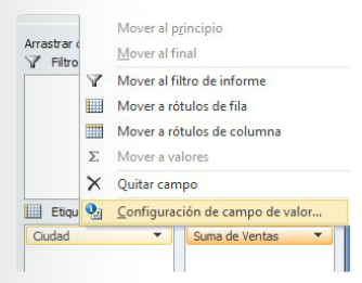 Del menú mostrando debe seleccionar la opción configuración de campo de valor.