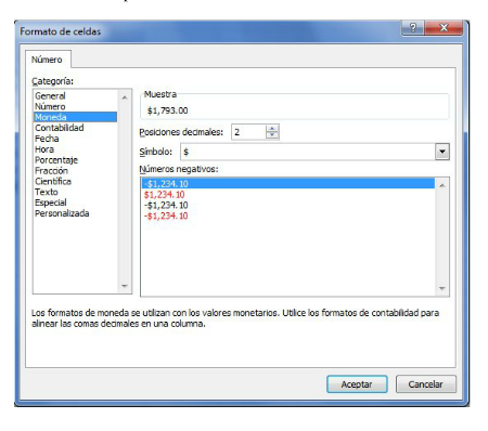 De hacer clic en el botón de formato de numero y se mostrara el cuadro de dialogo formato de celdas donde podrá seleccionar el formato deseado.