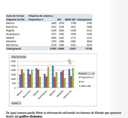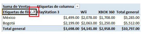 Al seleccionar cualquiera opción del filtro, la información será resumida y solamente mostrara un subconjunto de los datos de la tabla dinámica.