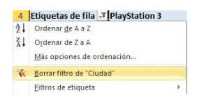 Para mostrar de nuevo todos los valores de los campos filtrados debe hacer clic en el botón de filtrado y seleccionar la opción Borrar filtro de.