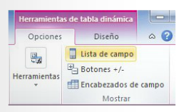 Las modificaciones las haremos en la lista de campos de la tabla dinámica que se encuentra en la parte derecha de la tabla.