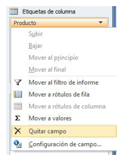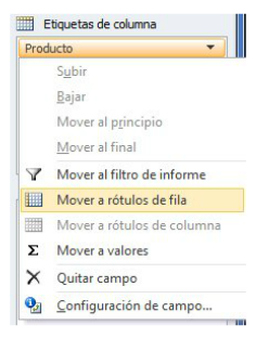 Permite mover el campo a cualquiera de las área disponibles, móviles al informe, Movimiento a rotulos de filas.