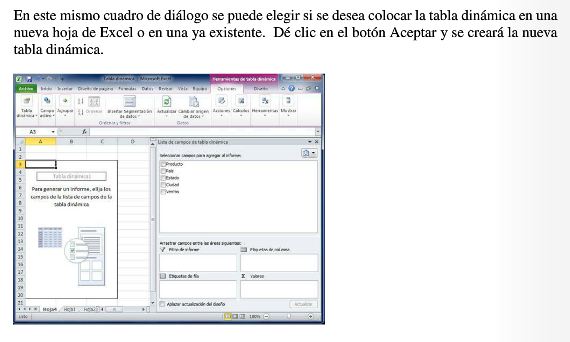 Definición de tablas dinámicas:Las tablas dinámicas te permiten resumir y analizar fácilmente grandes cantidades de información con tan solo seleccionar y arrastrar, que forma el reporte.