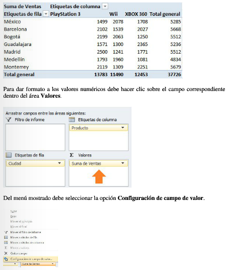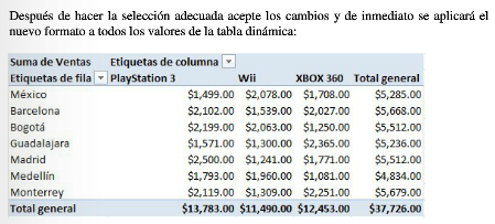 Filtrar una tabla dinámica:Puede filtrar y ordenar la información que se encuentra dentro de una tabla dinámica utilizando los filtros Excel coloque de manera predeterminada con el reporte como "Etiquetas de columna" y "Etiquetas de fila".Cuando seleccionamos cualquiera de las opciones del filtro, la información será resumida y solamente mostrara un subconjunto de los datos de la tabla dinámica.