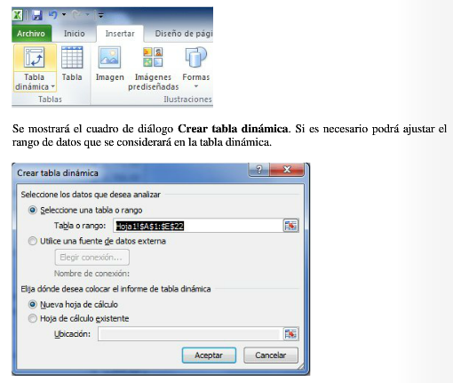 En este mismo cuadro de diálogo se puede elegir si se dea colocar la tabla dinámica en una nueva hoja de Excel o en una hoja ya existente.De clic en el botón ACEPTAR y se creará la nueva tabla dinámica.