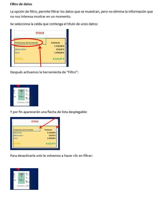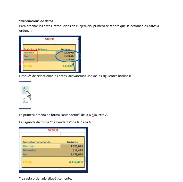 Ordenar, Filtros y Subtotales