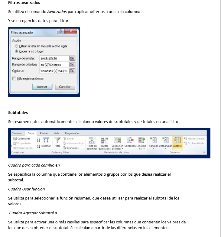 Resumen Ordenar Filtrar y Subtotales