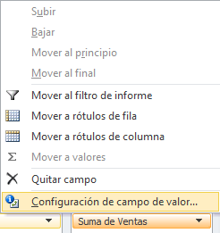 Del menú mostrado debes seleccionar la opción Configuración de campo de valor.