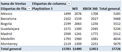 Así tendrás un reporte que compara las ciudades y los productos y para cada combinación obtendrás el total de ventas. Las tablas dinámicas te permiten elegir entre todas las columnas de una tabla de datos y hacer comparaciones entre ellas para poder realizar un buen análisis de la información.