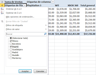 Para filtrar la información de la tabla dinámica es suficiente con hacer clic sobre cualquiera de las opciones del filtro.