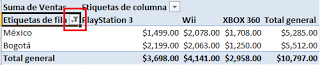 Filtrar una tabla dinámica Al seleccionar cualquier de las opciones del filtro, la información será resumida y solamente mostrará un subconjunto de los datos de la tabla dinámica.