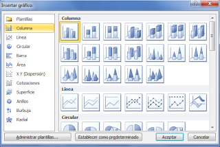 Se mostrará el cuadro de diálogo Insertar gráfico de donde podrás seleccionar el tipo de gráfico que deseas utilizar.