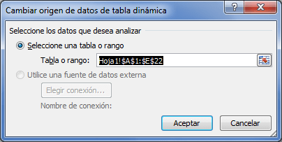 Acepta los cambios y la tabla dinámica reflejará el nuevo rango de datos que has especificado.