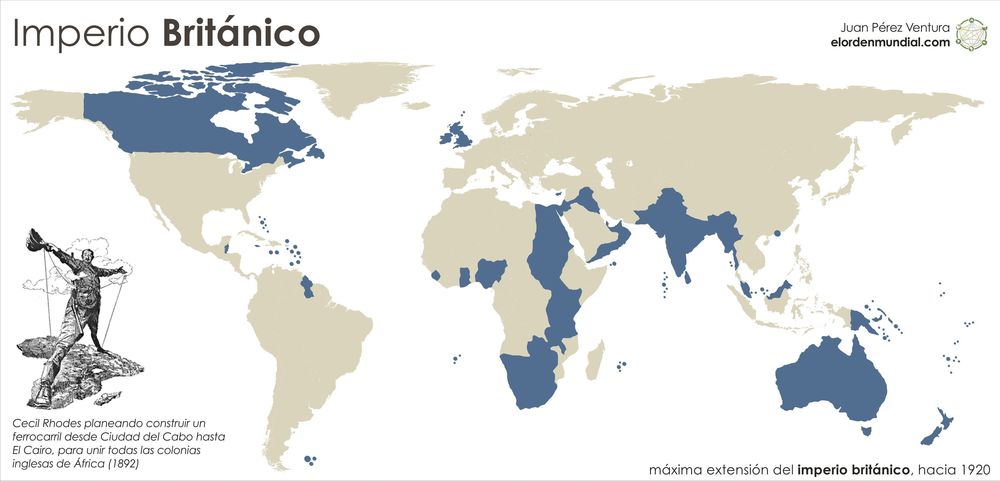 El imperio Británico fue el más extenso de todos, controlaba la mayor pare de territorios durante el reinado de la Reina Victoria de Inglaterra. En Asia su dominio más importante fue la India ya que se convirtió en la mayor proveedora de materias primas. También ejerce su dominio en China en el que finalizo la guerra del Opio y Hong Kong pasa a manos de los británicos. En África traza una línea que pasara desde el Cairo hasta Ciudad del Cabo. Para ello tiene que luchar con dos poblaciones de indígenas: los zulus y los boers. Más tarde completo su conquista con Kenia, Somalía, Uganda y Nigeria. En Oceanía conquisto Nueva Zelanda sometiéndolo bajo una metrópoli y por ultimo en África conquisto Canadá.