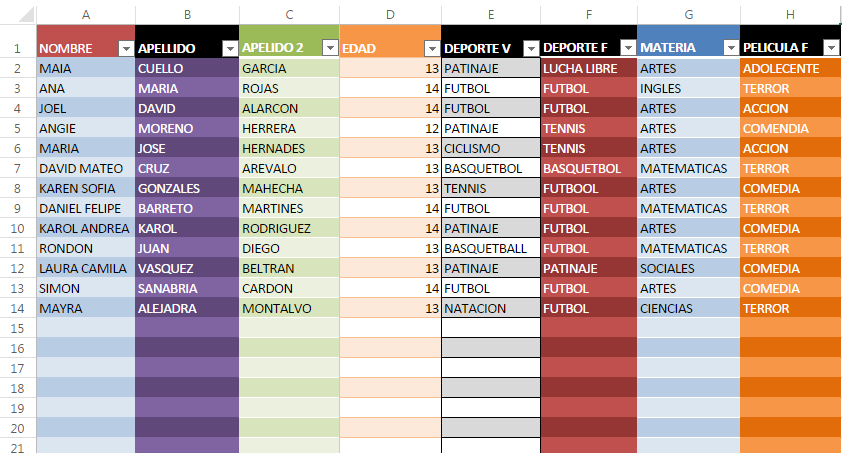 BASE DE DATOS CON MS EXCEL