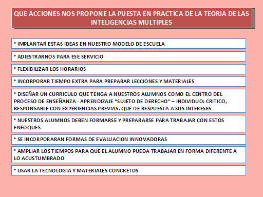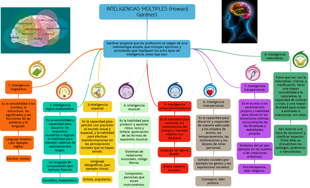 la teoría de las inteligencias múltiples es un modelo de concepción de la mente propuesto en 1983 por Howard Gardner, profesor de la Universidad de Harvard. Para él, la inteligencia no es un conjunto unitario que agrupe diferentes capacidades específicas, sino una red de conjuntos autónomos, relativamente interrelacionados.1Para Howard Gardner, la inteligencia es un potencial biopsicológico de procesamiento de información que se puede activar en uno o más marcos culturales para resolver problemas o crear productos que tienen valor para dichos marcos.Indica que las inteligencias no son algo que se pueda ver o contar: son potenciales —es de suponer que neurales— que se activan o no en función de los valores de una cultura determinada, de las oportunidades disponibles en esa cultura y de las decisiones tomadas por cada persona y/o su familia, sus enseñantes y otras personas3
