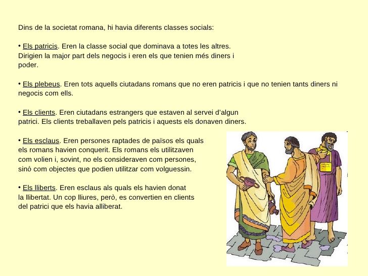 CIUTADANS:Els ciutadans només són els originaris de Roma per part de pare i per part de mare. Podien votar casar-se poden votar denunciar a la gent però no ser denunciada etc....