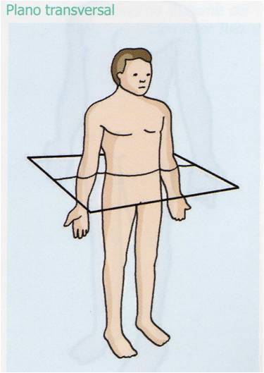 Posición Anatomica Posición universalmente aceptada para el estudio del cuerpoa) Parado frente al observador.b) Cabeza erguida.c) Brazos a ambos lados del tronco con las palmas abiertas hacia el frente.d)Pies a la altura de las caderas los puntos hacia el frentePlanos y Ejesa) Plano Sagital: Pasa una linea imaginaria sobre un eje central divide el cuerpo en a 2 imágenes aproximadamente espejo y en proporciónb) Plano Coronal u TransversalLinea imaginaria a la altura del ombligo y esta divide al cuerpo en parte cefálica (arriba) y en parte caudal (abajo).c) Plano FrontalEsta divide al cuerpo en la porción anterior o ventral (trasera) y dorsal posterior (frente)SegmentosCabeza y CuelloTroncoExtremidades-Superior (Brazos)-Inferior (Piernas)Cavidades:Espacio "vacio" o "hueco" dentro del organismoa) Craneal: Craneo o cavidad que aloja la medula espinal u osea (sistema nervioso central)b) Toracica - Clavicula: Costillas y esternon, clavicula base del cuello, vertebras de la columna.c) Abdominal: Aloja la mayor parte del sistema digestivod) Pelvica: Limitada por la pelvis (Organos Reproductores)