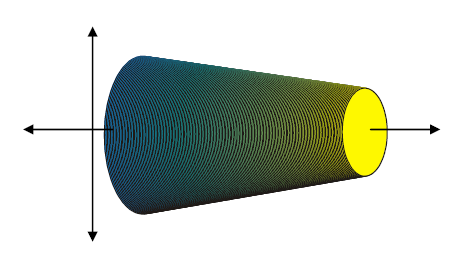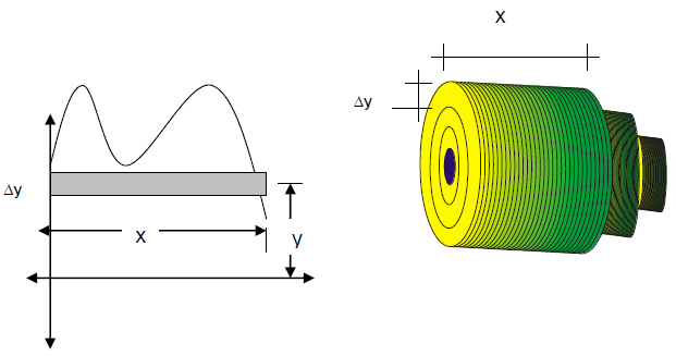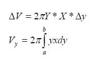 2. Si se gira una franja horizontal alrededor del eje x tomando como base un radio Y, la franja se movilizará en su totalidad haciendo un recorrido de 2TT, formando un cilindro hueco cuyo volumen vendría dado por: